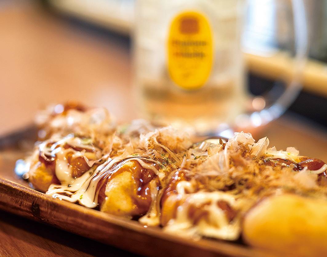 ふわとろのたこ焼き濃厚ソースと超炭酸が刺激的なハイボール