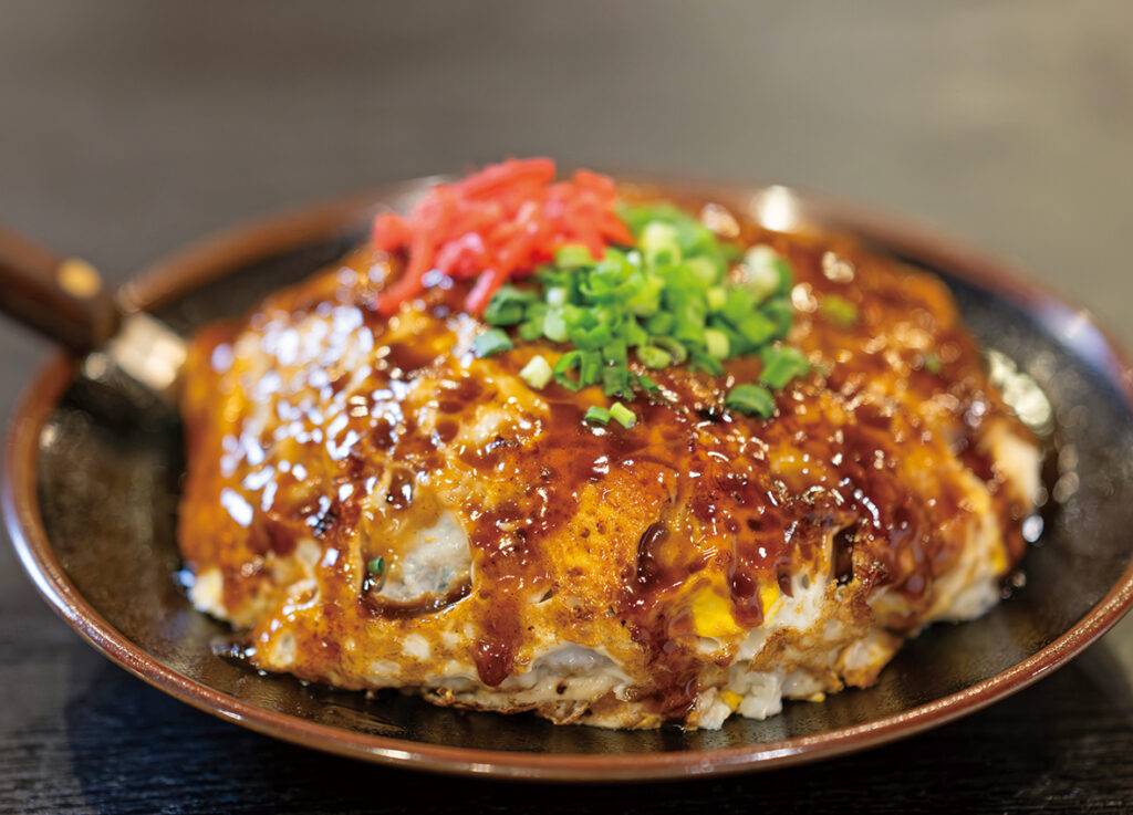 お好み焼きはオリジナル粉使用で、焼き上がりはカリッとふっくら。