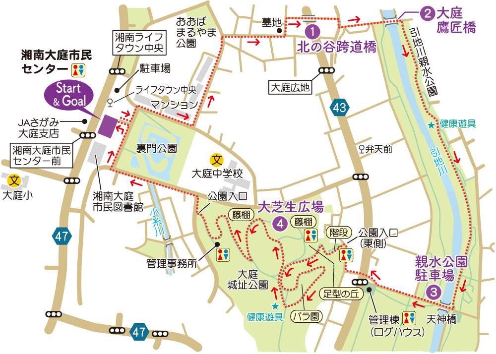 藤沢市13地区の健康づくりウオーキングコース、〝シーズン5〟第3回は、湘南大庭地区の「親水公園と大庭城址みどりいっぱいコース」です。