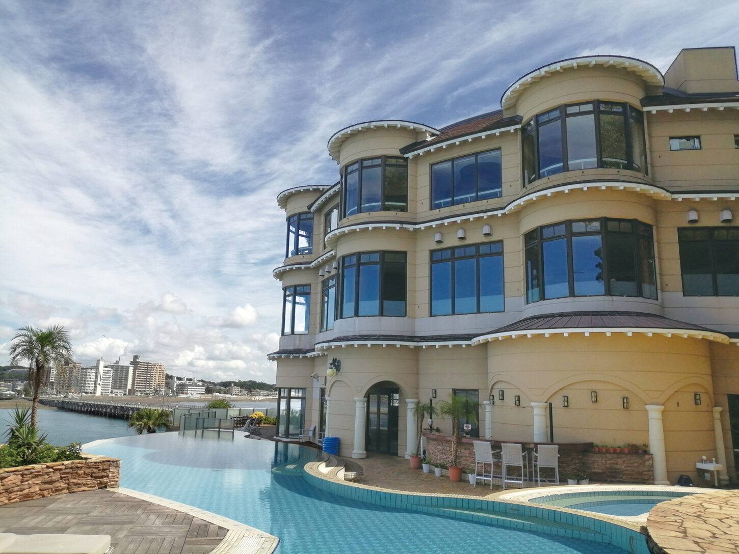 温泉と多彩なプールを有する「江の島アイランドスパ」。目の前に絶景が広がる「富士海湯(ふじみゆ)」は高温湯(源泉使用)、冷泉、人工の高濃度炭酸泉に分かれています。