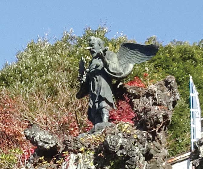 周辺では大天狗1体(大きい像)、烏(からす)天狗11体(大きい像1体と小さい像10体)の計12体が見られます。
