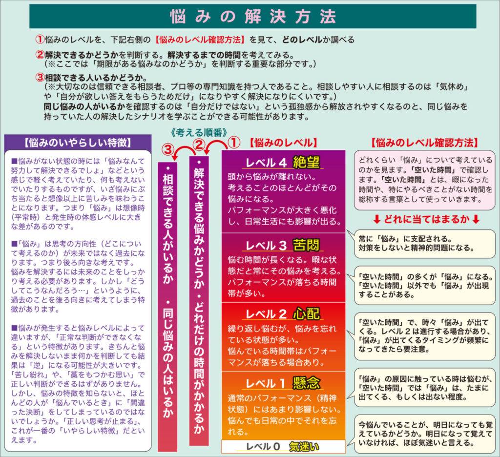 悩みのない平常時でもこの図で学ぶことによって、悩みに対する耐性がつき、悩みにくい体質になるのではないでしょうか。