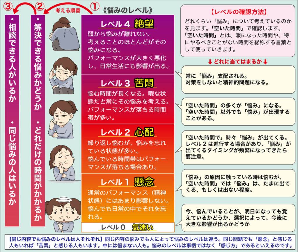 なあこさんの悩みレベルは、「このままだと家族や自分に悪影響…」とあるので〈レベル2・心配〉から〈レベル3・苦悶〉に行きかけているか、すでに苦悶になっている状態でしょう。